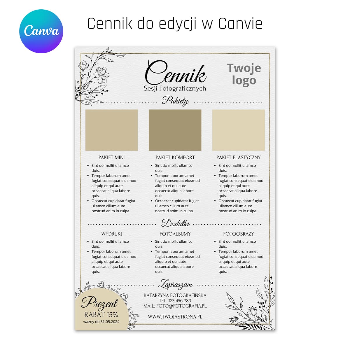 Cennik - szablon do edycji w Canva