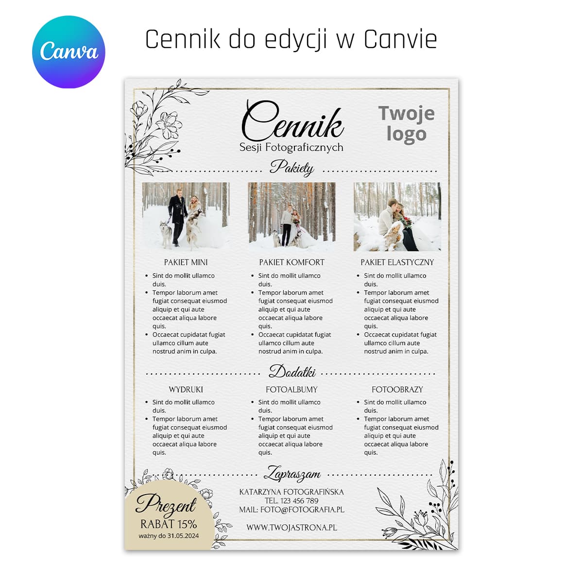 Po zakupie otrzymasz link do szablonu w Canvie.