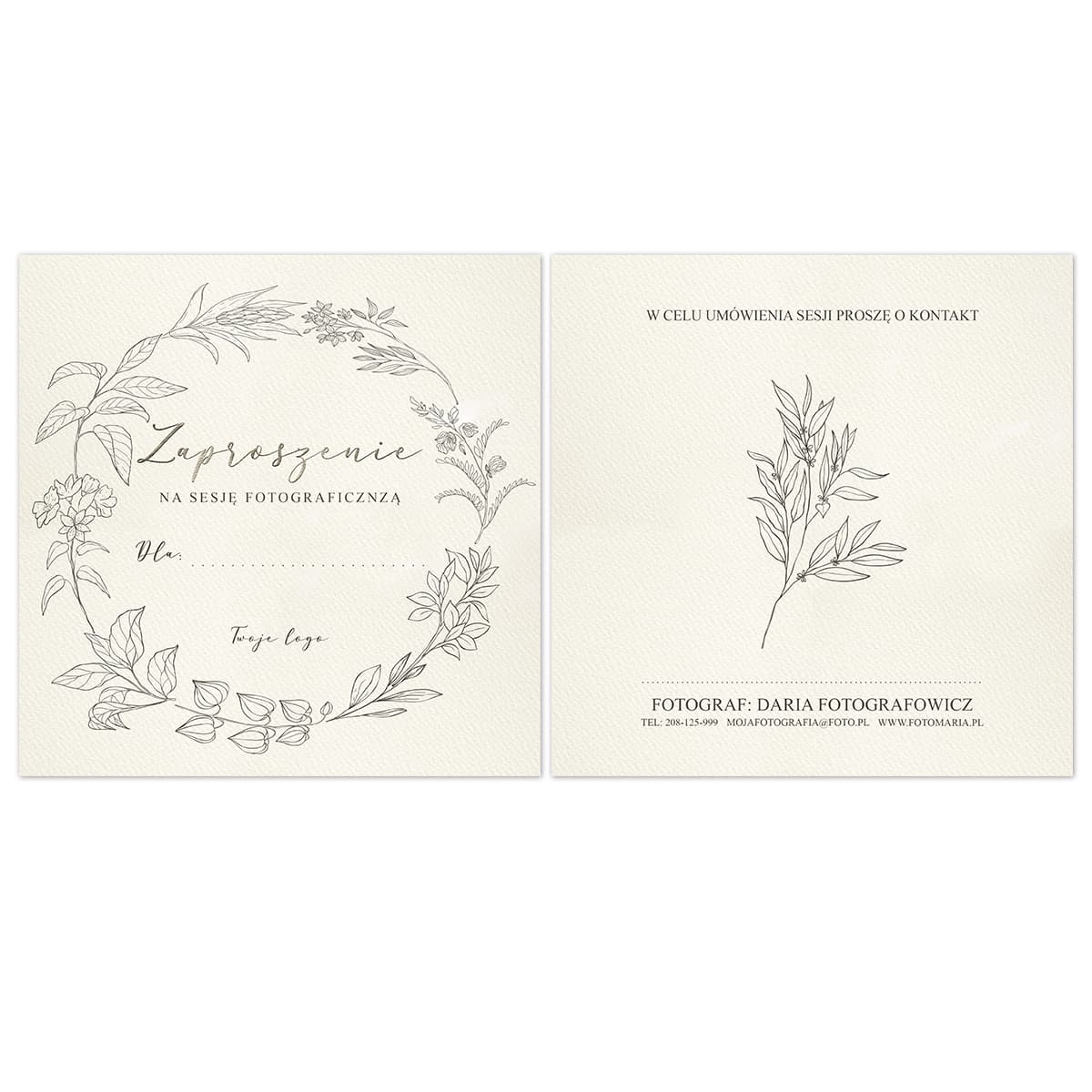 Szablon zaproszenia na sesje fotograficzną.