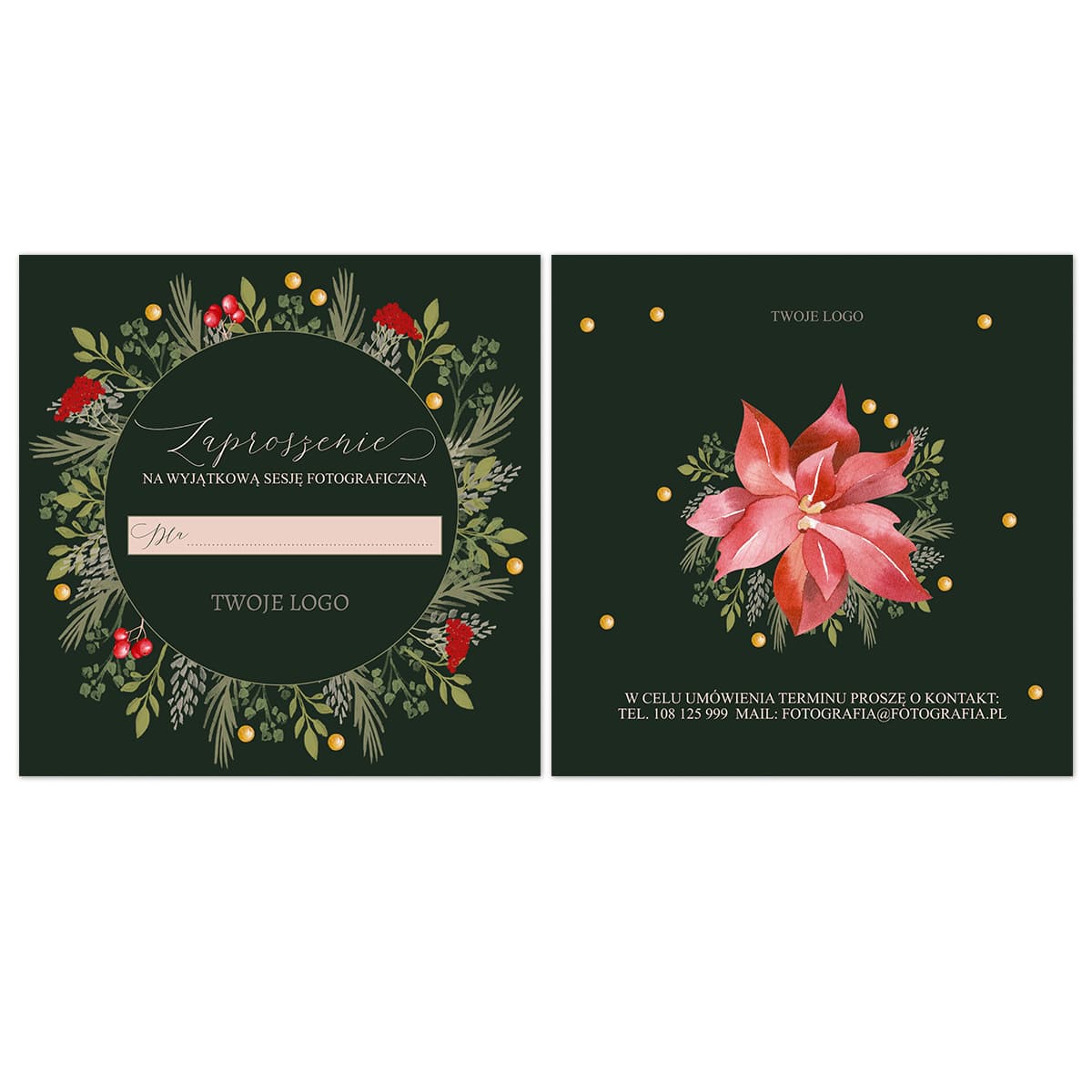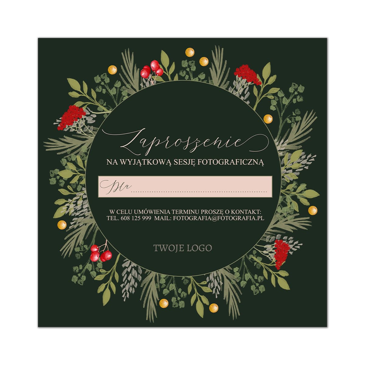 Szablon zaproszenia na sesje fotograficzną.
