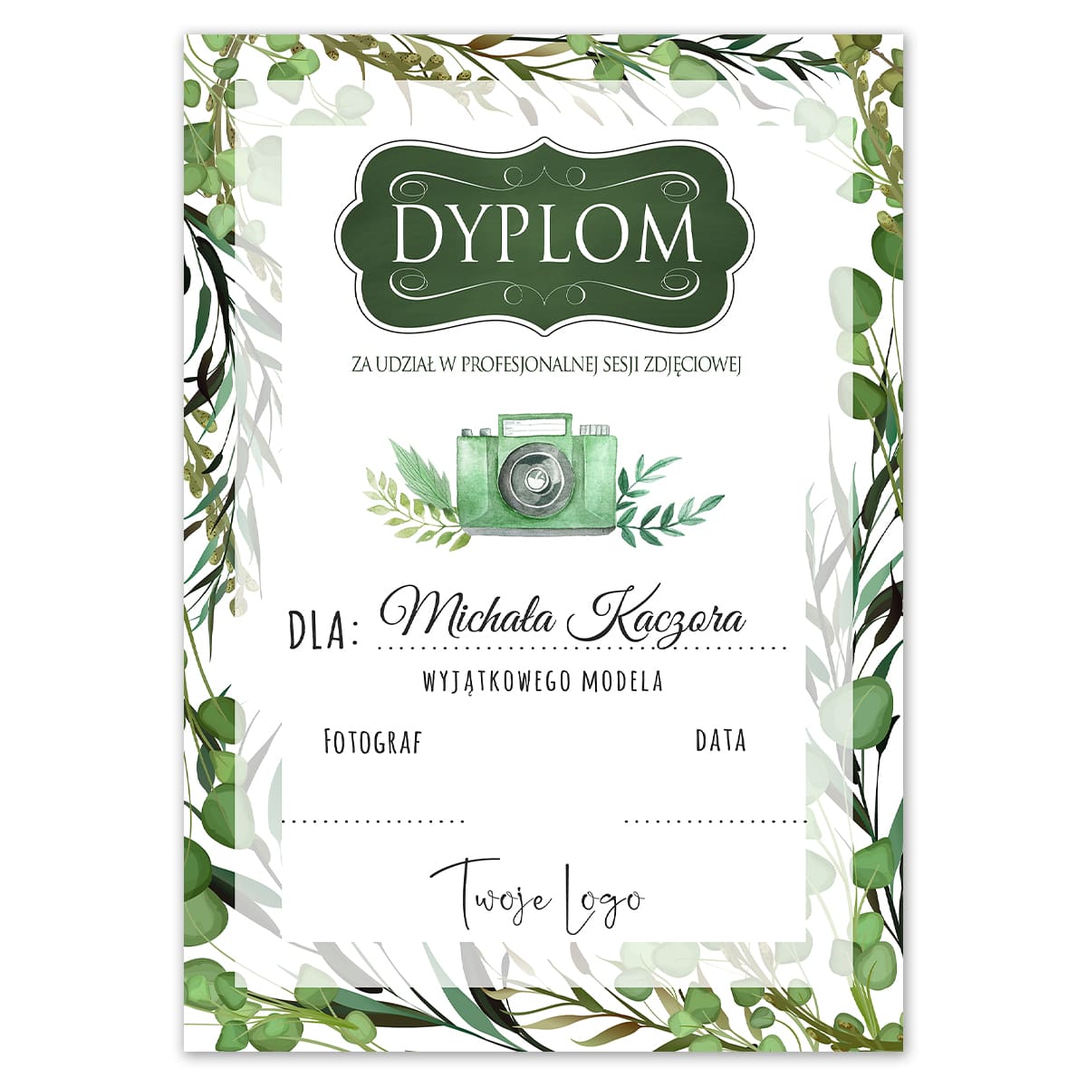 Szablon dyplomu za udział w sesji zdjęciowej.