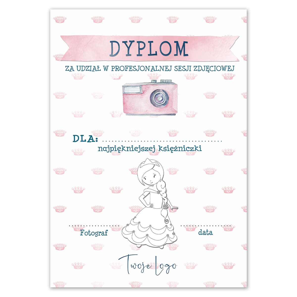 Szablon dyplomu za udział w sesji zdjęciowej.