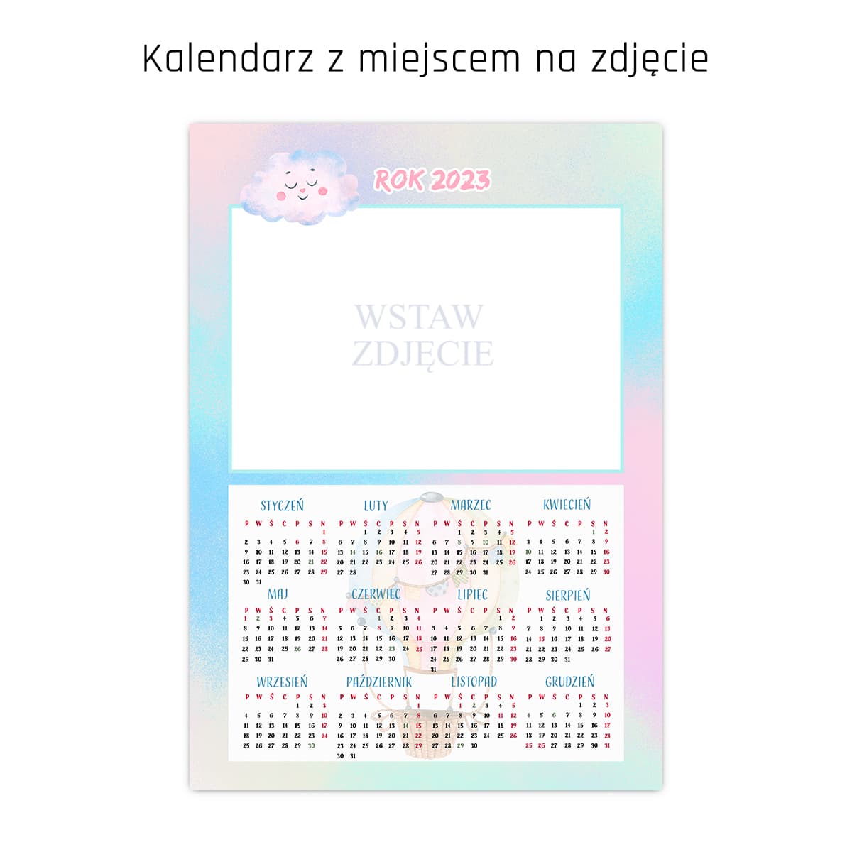 Szablon kalendarza z miejscem na zdjęcie. Wspaniały pomysł na dodatek do sesji świątecznej, noworocznej, szkolnej, przedszkolnej.