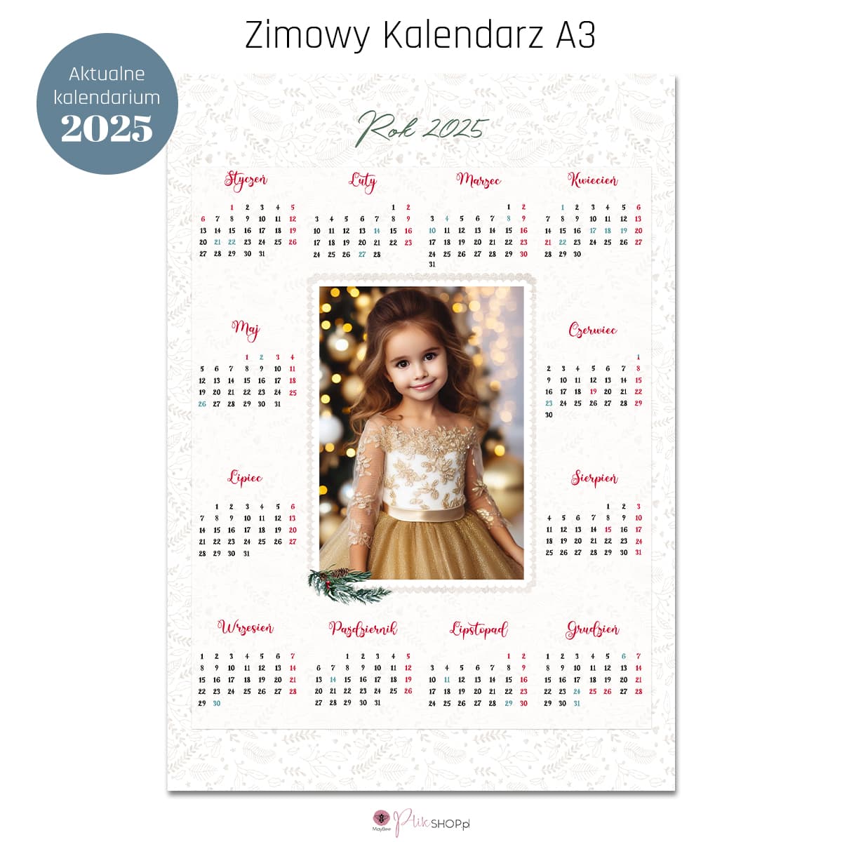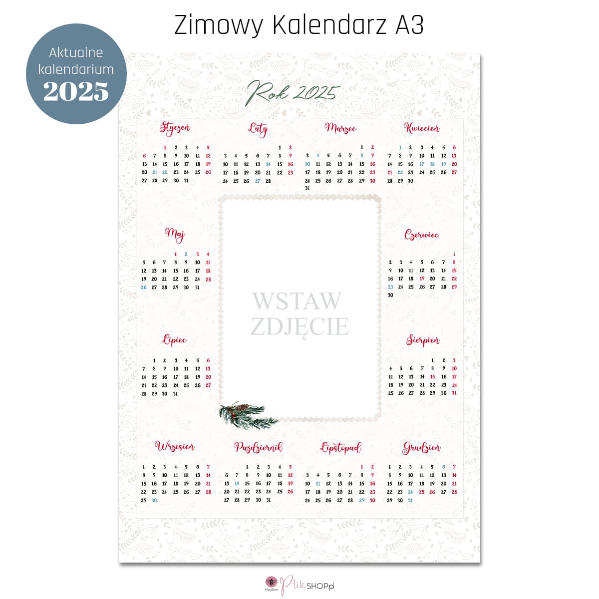 Szablon kalendarza z miejscem na zdjęcie. Wspaniały pomysł na dodatek do sesji świątecznej, noworocznej, szkolnej, przedszkolnej.