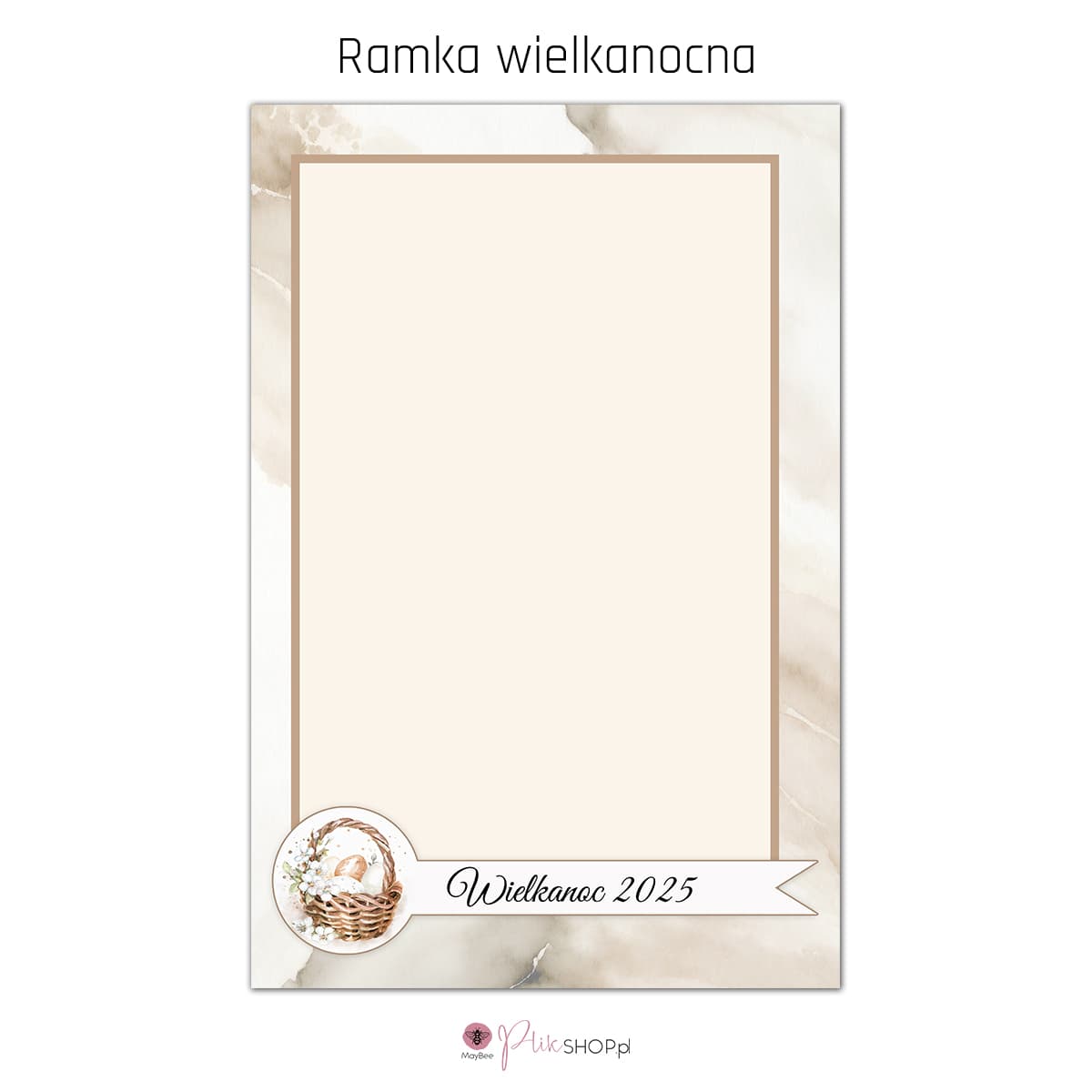 Dodaj świąteczny akcent do swoich zdjęć dzięki wielkanocnej ramce w delikatnym, beżowym stylu. Piękne, subtelne elementy graficzne idealnie komponują się z fotografiami dziecięcymi i rodzinnymi, tworząc eleganckie i ciepłe kompozycje.