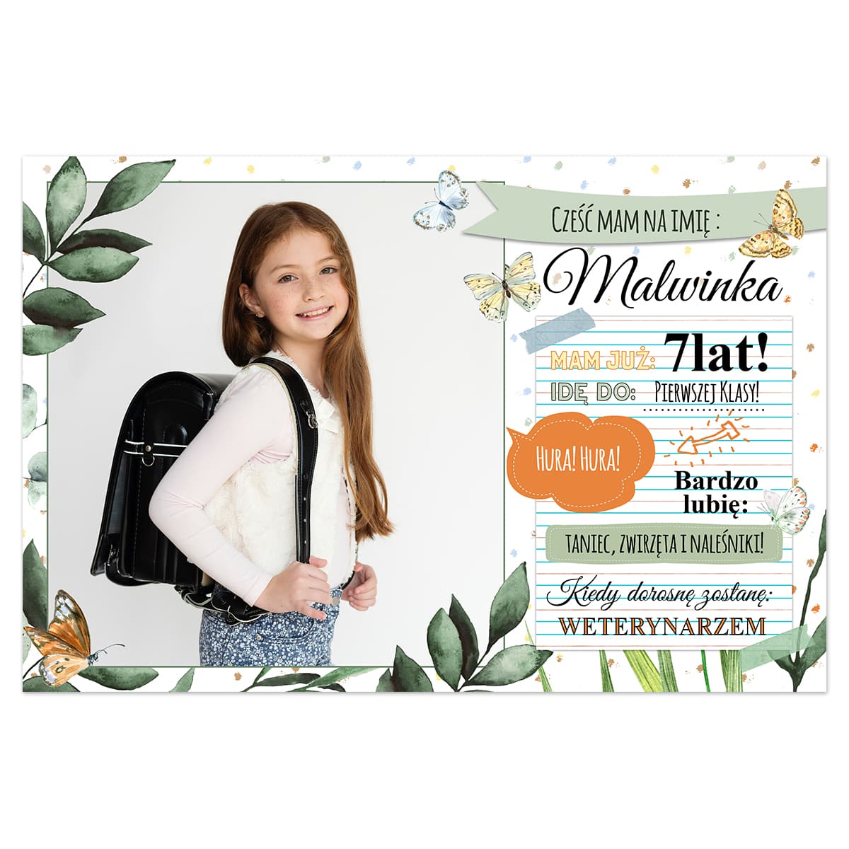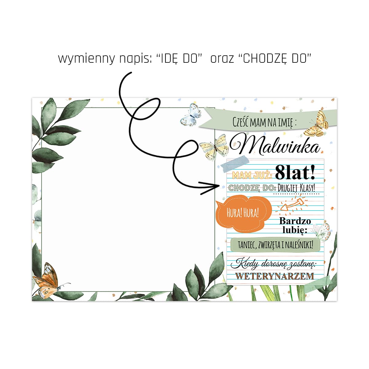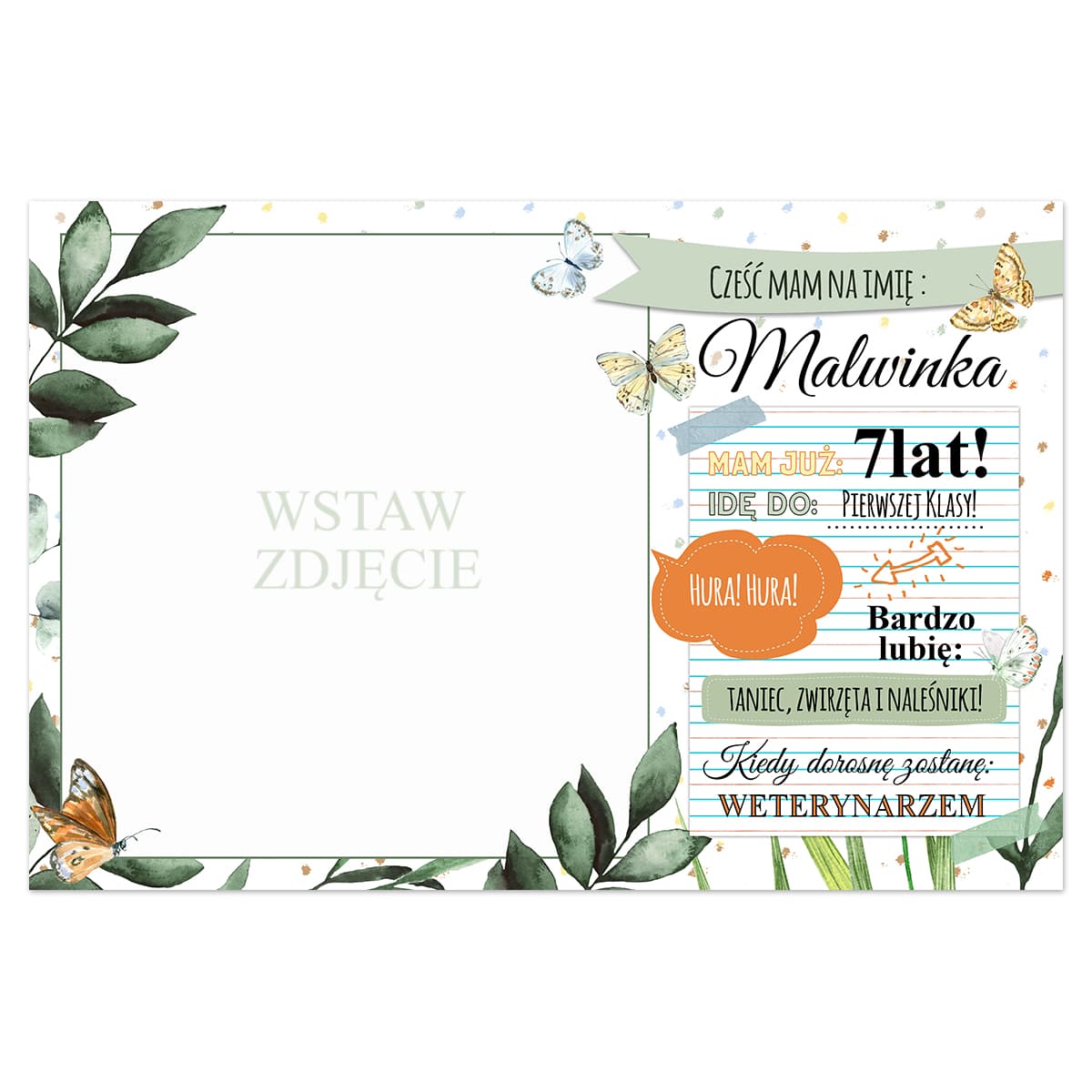 Szablon cyfrowy metryczki szkolnej/ przedszkolnej - Motylki. Chętnie zamawiany przez przedszkola i rodziców gadżet do sesji przedszkolnych.