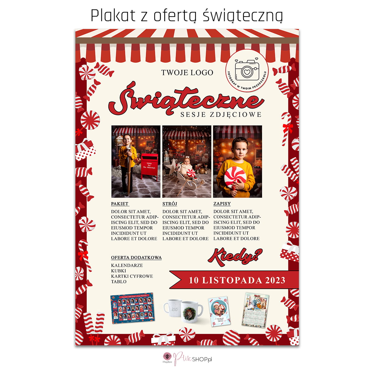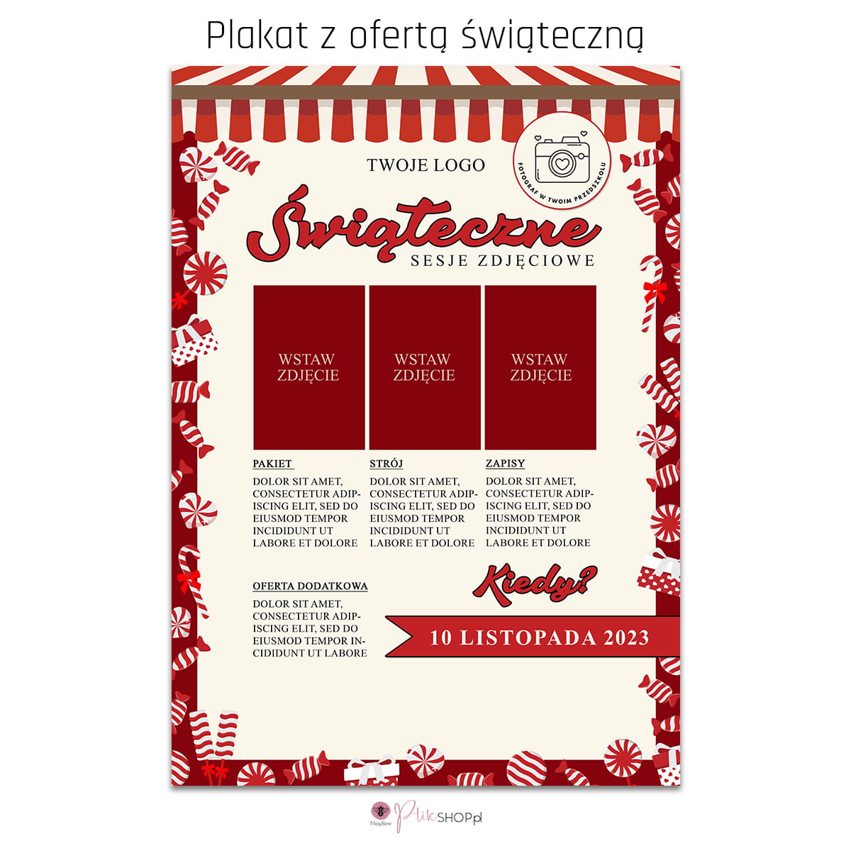 Okres sesji świątecznych w przedszkolach to "żniwa" dla fotografów, którzy zajmują się tym rodzajem fotografii. Koniecznie go wykorzystaj. Jeśli nie chcesz marnować czasu na tworzenie od podstaw oferty, albo czujesz, że nie masz takich umiejętności- wykorzystaj ten gotowy szablon oferty z cennikiem, przykładami gadżetów i portfolio.