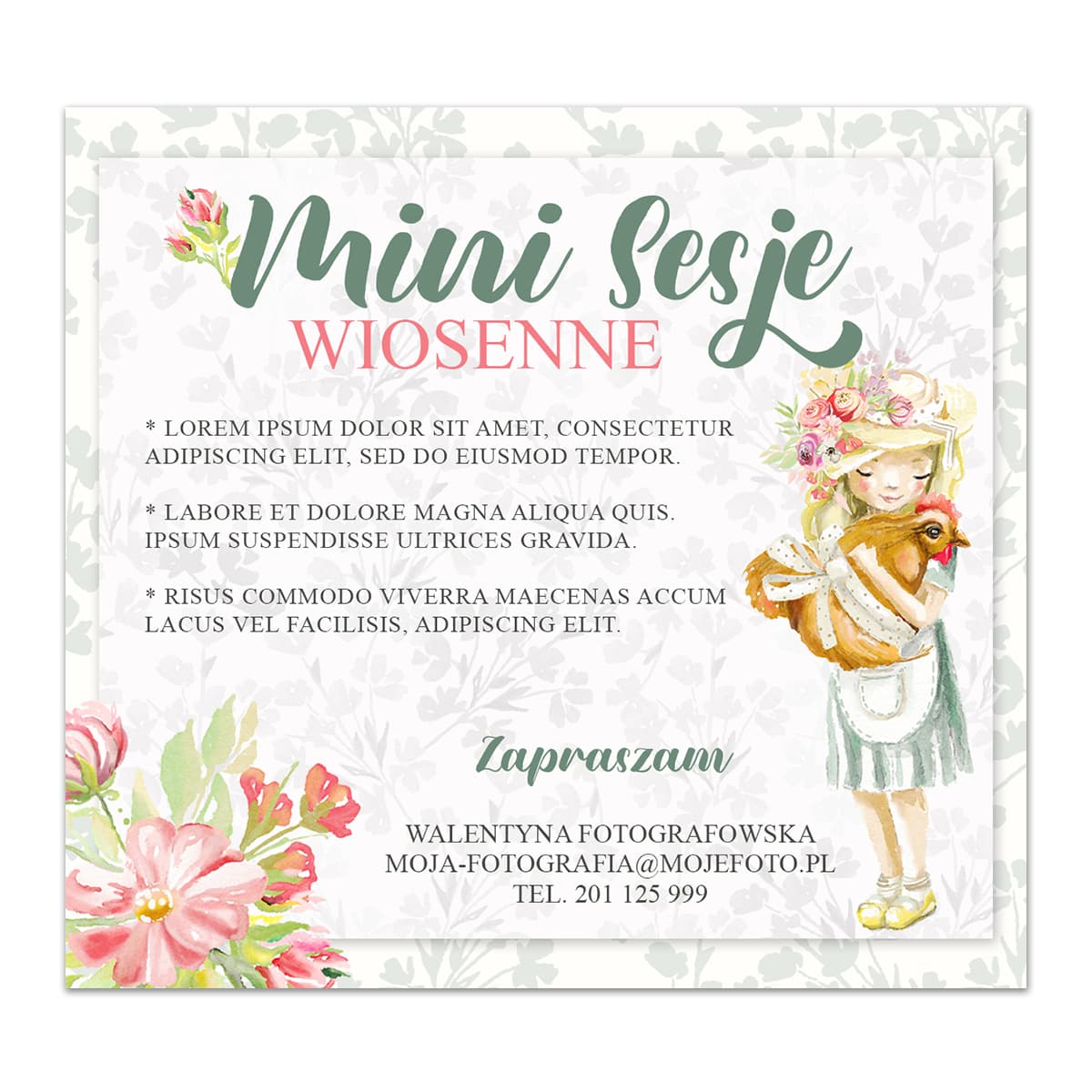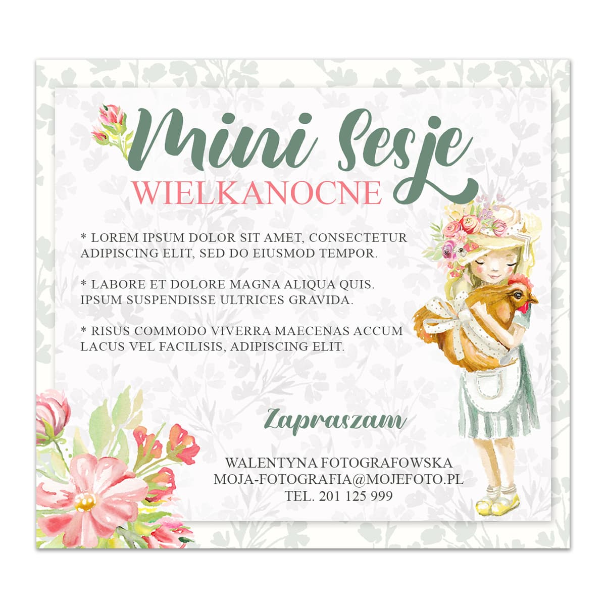 Plakat cyfrowy zapowiadający nie tylko wielkanocne sesje zdjęciowe. Dodatkowy napis: "Sesje Fotograficzne w stylu boho" nadają plakatowi uniwersalny charakter :)