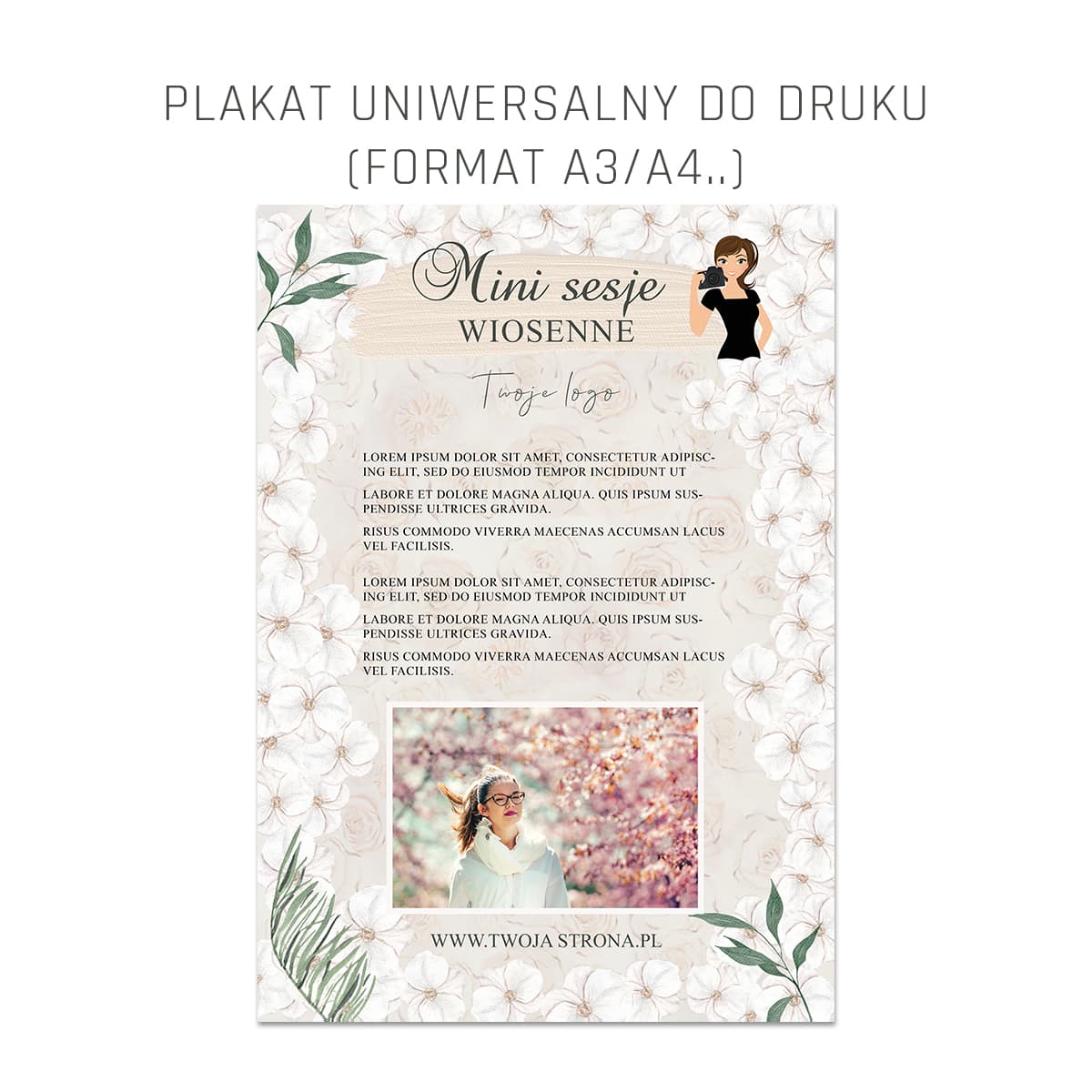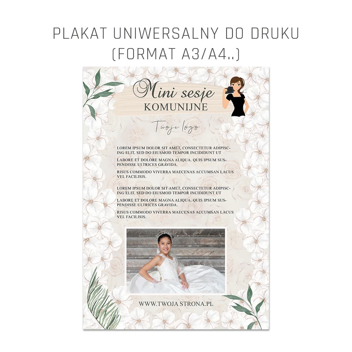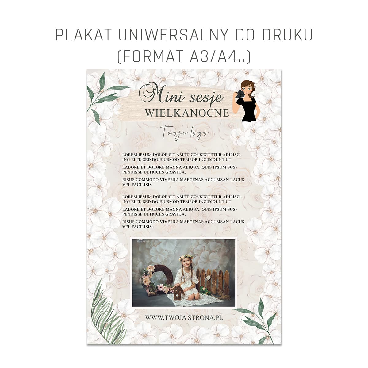 Uniwersalny plakat - informujący o sesjach wielkanocnych, wiosennych, komunijnych, na dzień mamy. Doskonały do promocji sesji w przedszkolu, jak również do klasycznych mini sesji.