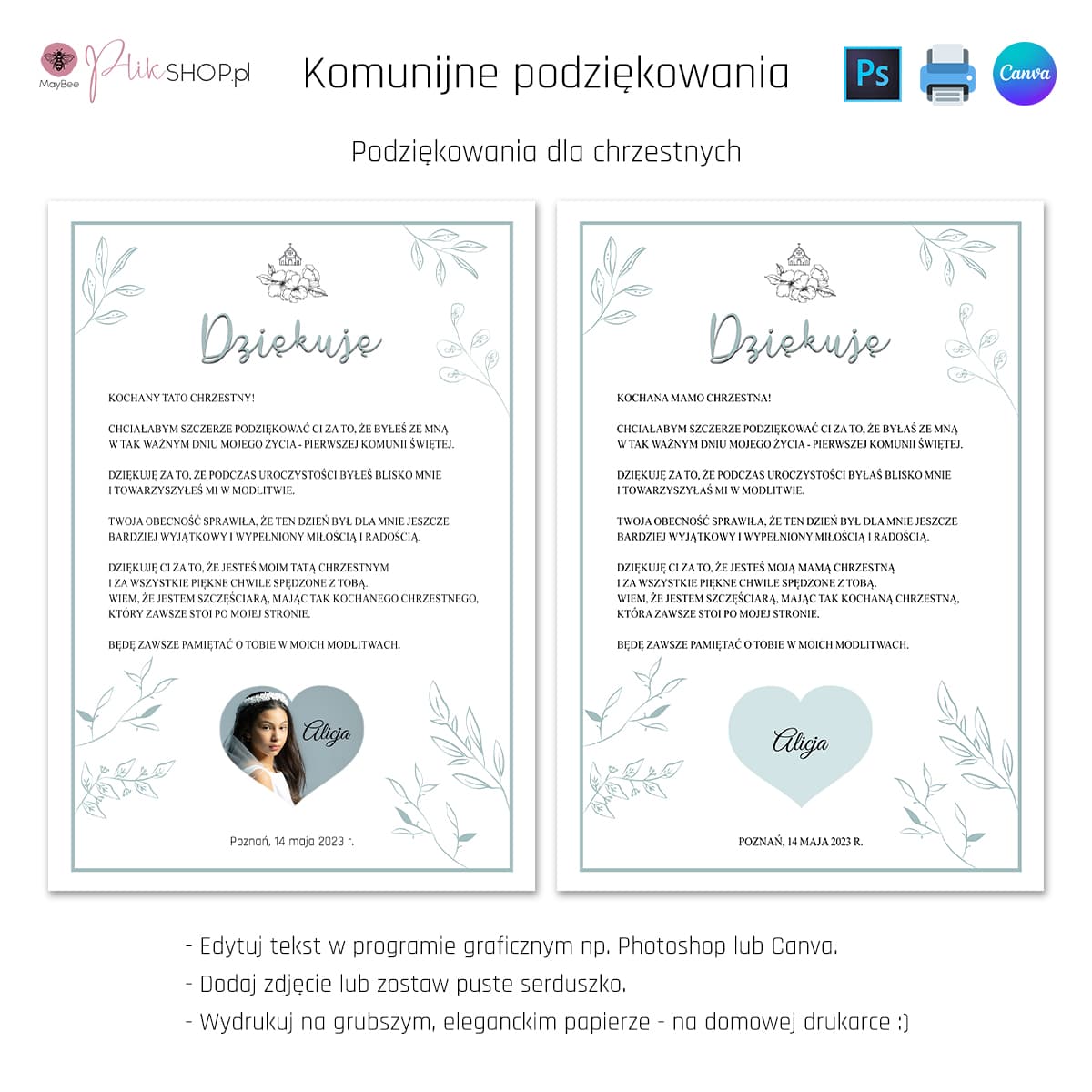 2x link do szablonów Canva - podziękowania dla chrzestnych i podziękowania dla gości