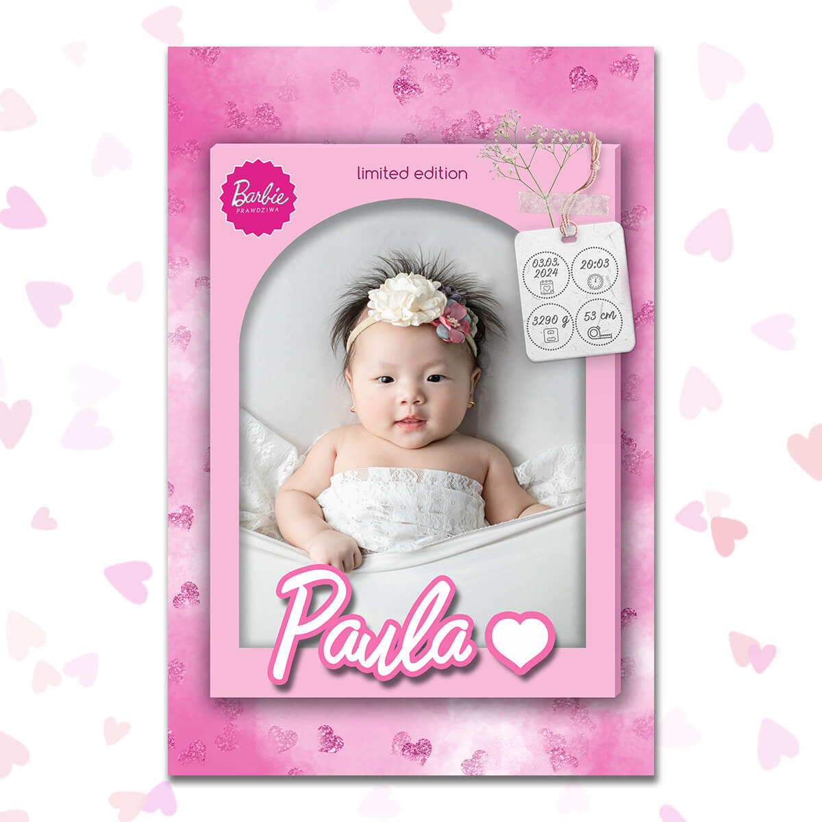 Ramka ma dodatkową funkcję metryczki.. Dzięki personalizacji treści możesz dopasować plakat do wielu okazji! Sesje w stylu Barbie sprawdzą się nie tylko w szkołach czy przedszkolach. Kobiety w każdym wieku chcą poczuć się jak Barbie.