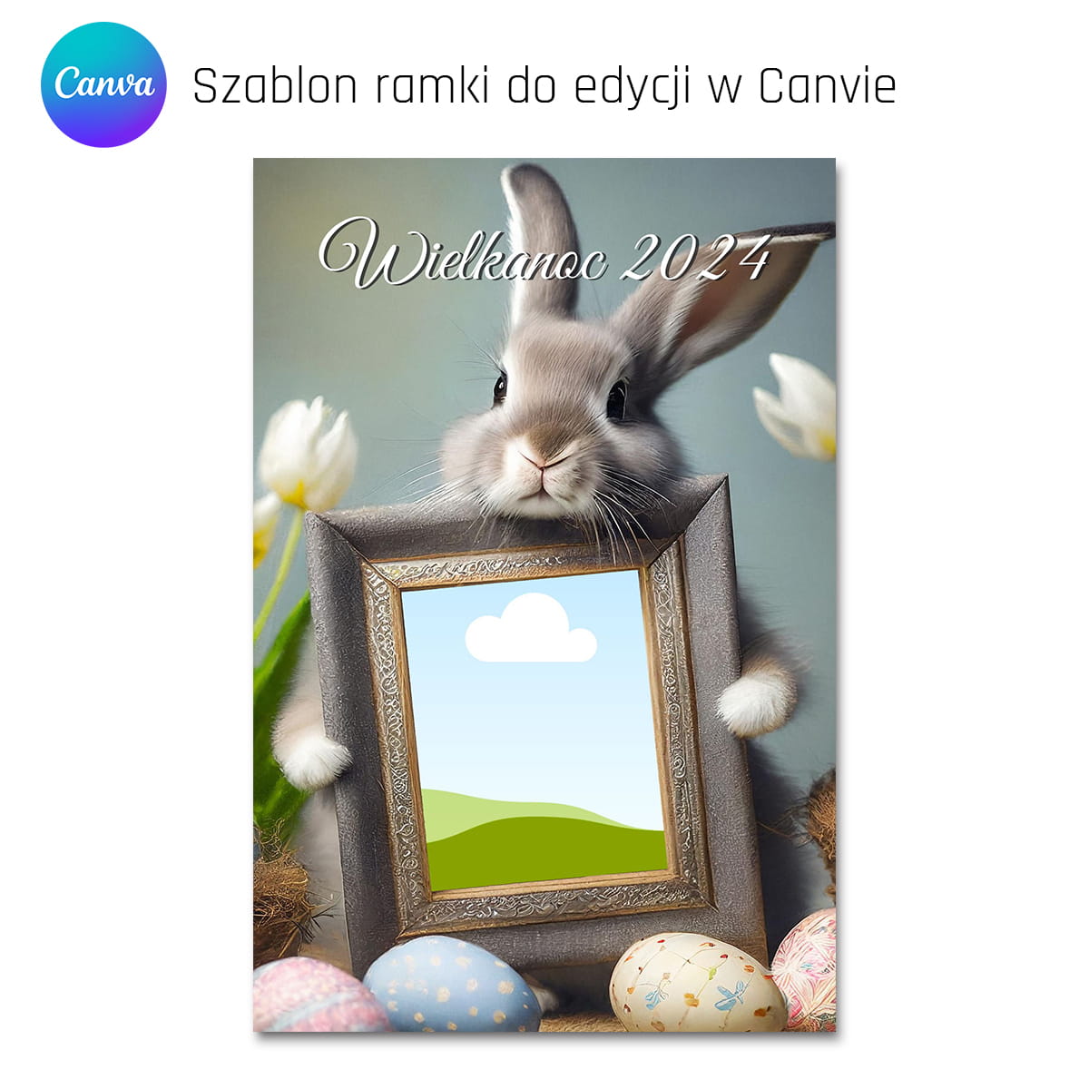 Ramka cyfrowa z prawdziwym zajączkiem wielkanocnym - CANVA