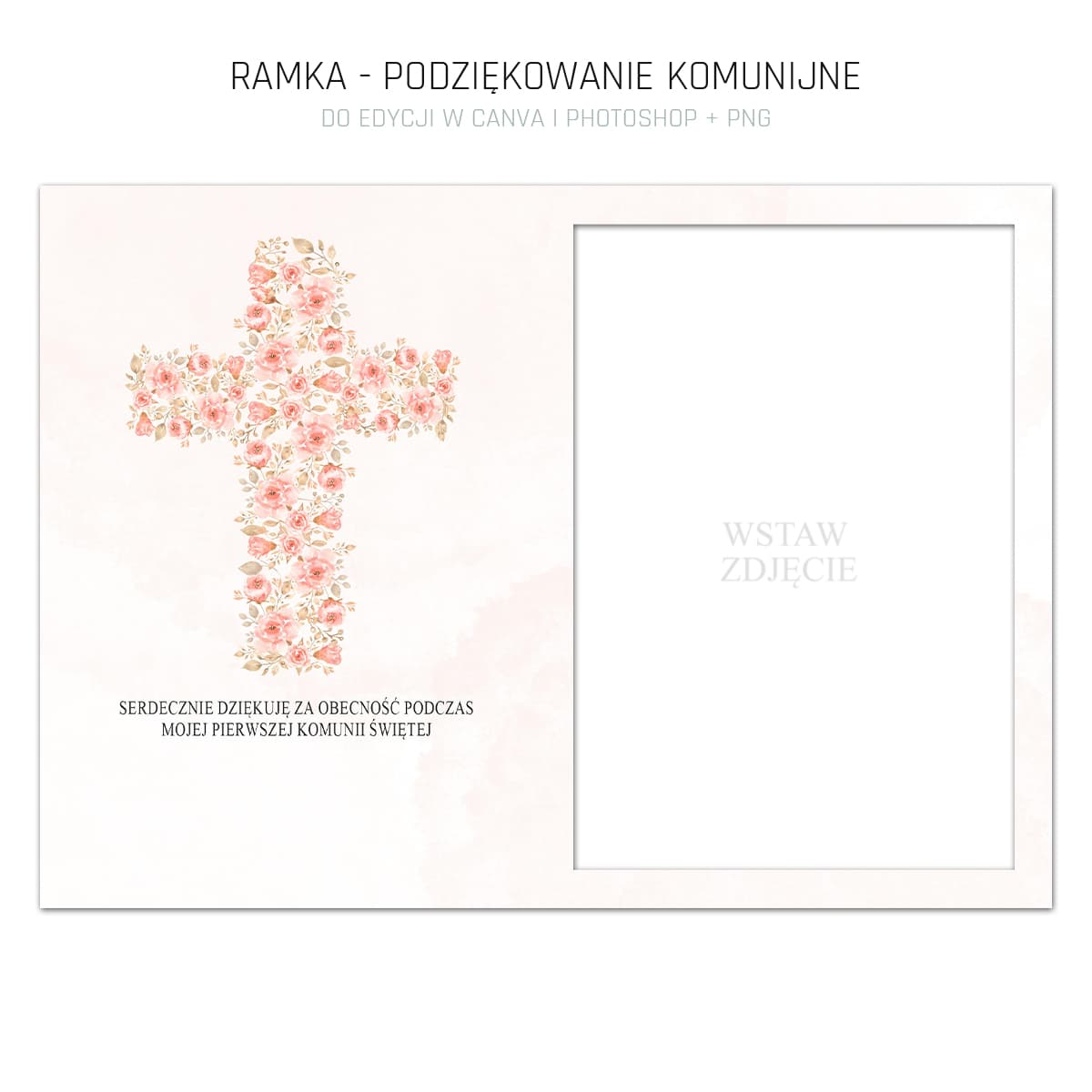 Ramka komunijna, która może być podziękowaniem dla gości, zaproszeniem lub pamiątką komunijną.