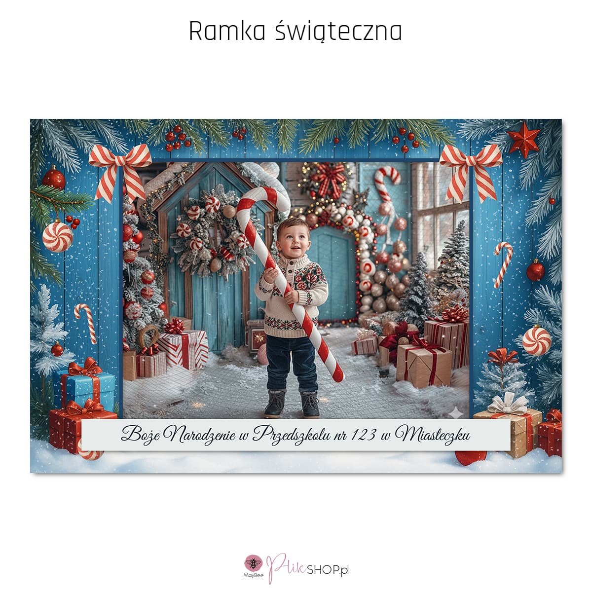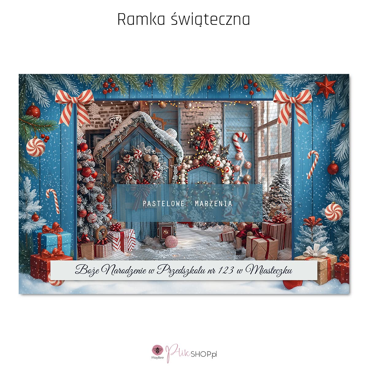 Szablon cyfrowy ramki świątecznej. Idealnie sprawdzi się jako kartka - ramka na zdjęcia świąteczne również w szkołach i przedszkolach.