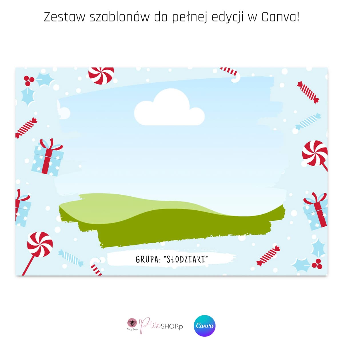 Zestaw szablonów do oprawy przedszkolnych i szkolnych sesji świątecznych do edycji tylko w CANVA.