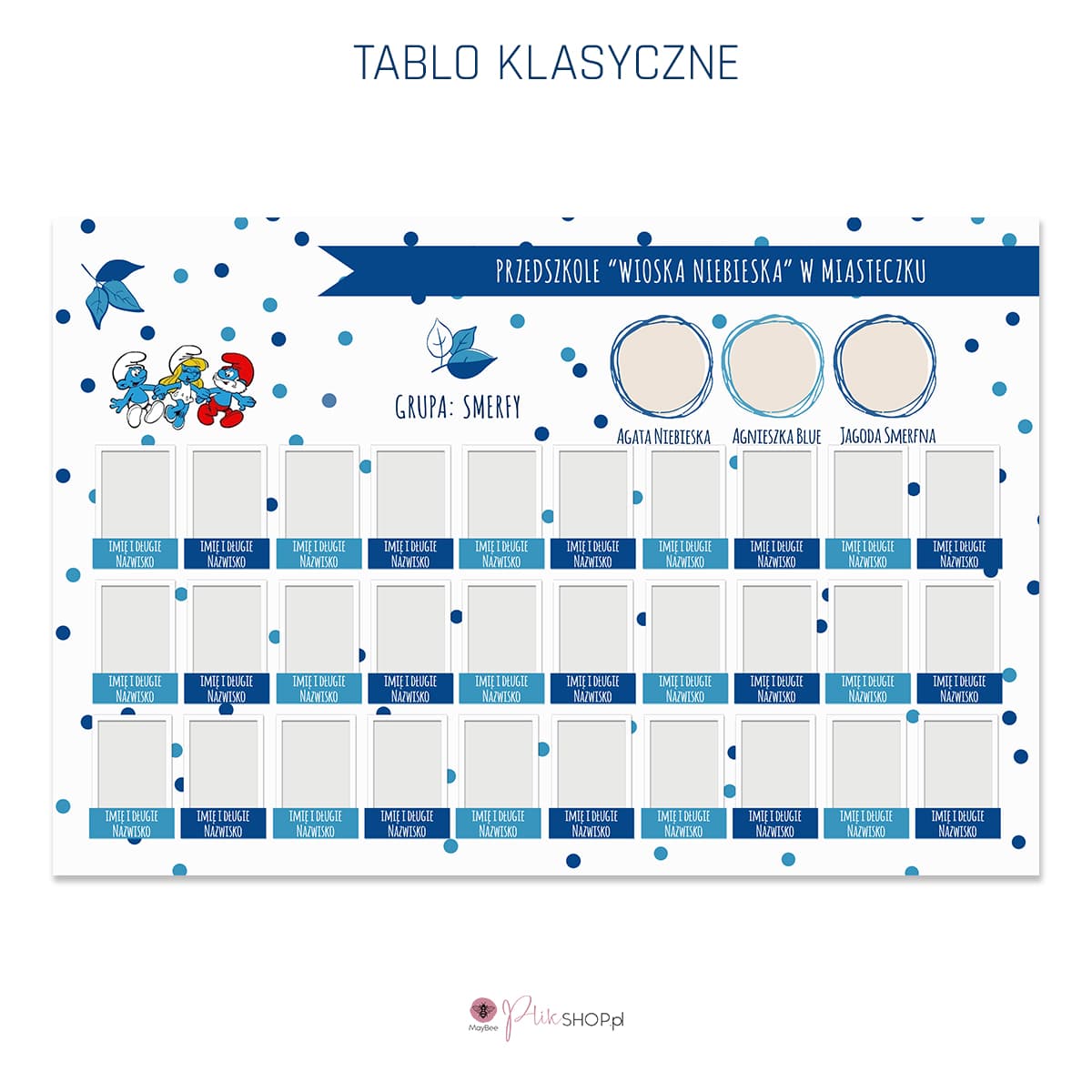 Szablon tablo w wersji klasycznej. Sprawdzi się jednakowo do sesji szkolnych, jak i przedszkolnych.