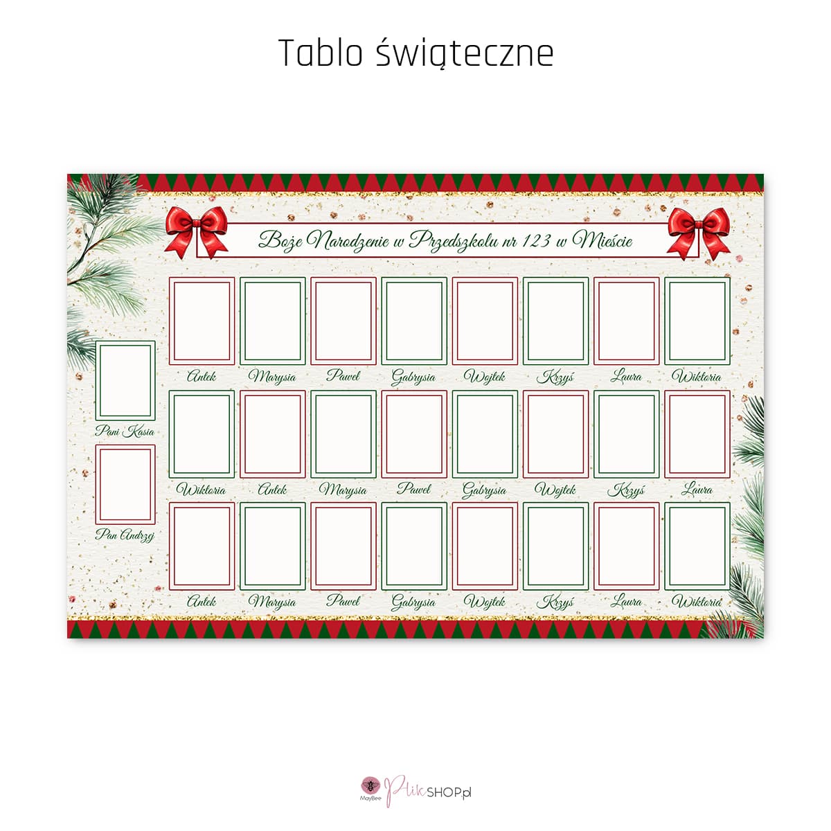 Wprowadź do swojej świątecznej oferty piękne tablo. Ten wzór to idealny wybór dla tych, którzy chcą dodać elegancką, świąteczną atmosferę do portretów dzieci. Dzięki temu szablonowi możesz dostosować tablo do dowolnej liczby osób, tworząc niezapomnianą, bożonarodzeniową pamiątkę.