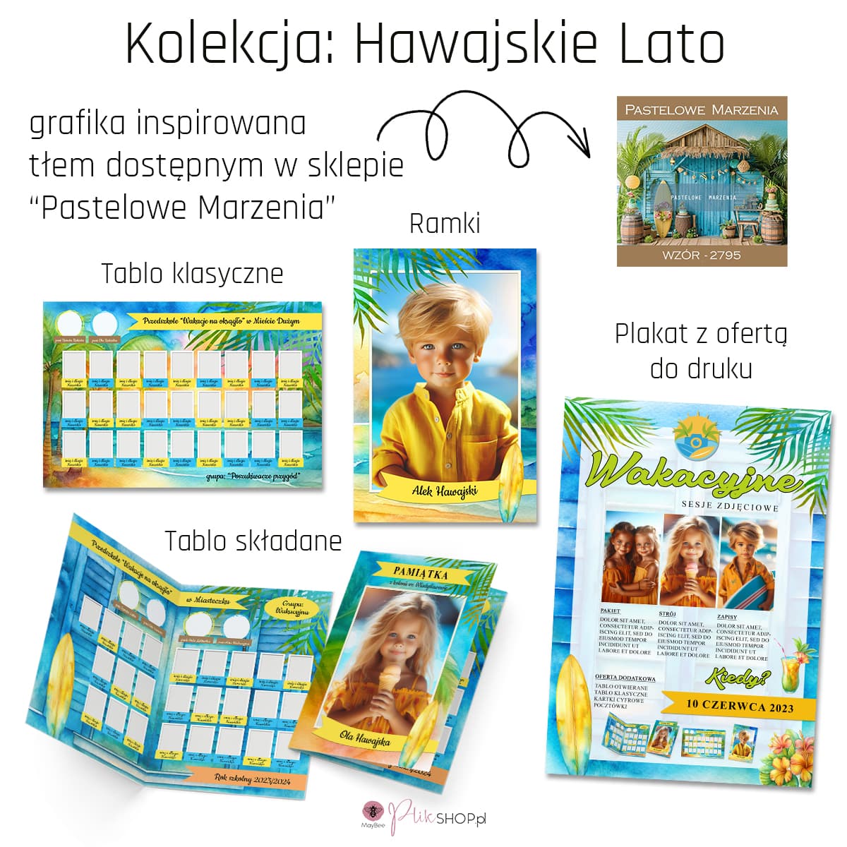 Już za chwilkę, koniec roku szkolnego? To idealny moment na letnie sesje zdjęciowe. Dodaj do swoich kadrów odrobinę wakacyjnego klimatu. Opraw swoje zdjęcia w szablony z kolekcji "Lato na Hawajach".
