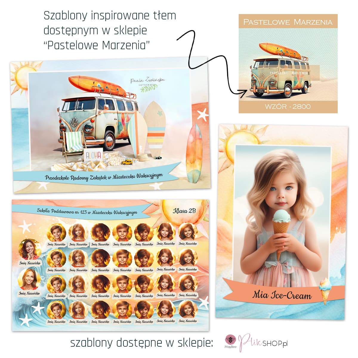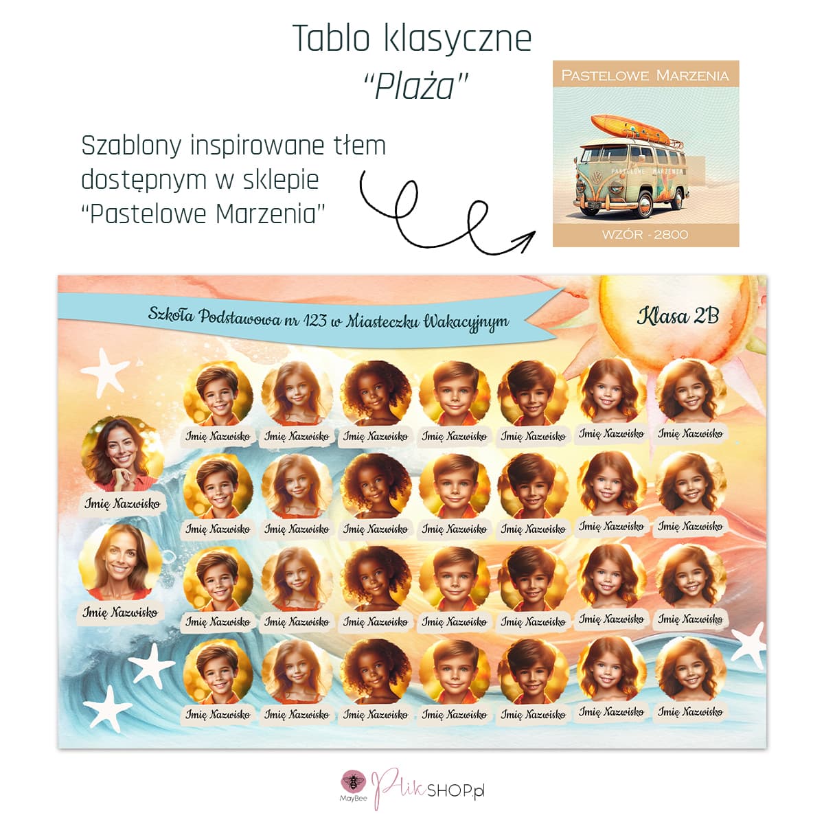 - Potencjał Zarobkowy: Stwórz kompletny pakiet pamiątek szkolnych, który wzbogaci Twoją ofertę i pozwoli Ci zarobić więcej. Tablo Szkolne może być częścią pakietu, który obejmuje również zdjęcia portretowe i zdjęcia z przyjaciółmi z ławki. Szablony ramek do kompletu w pasującej grafice znajdziesz klikając guzik „produkty powiązane” tuż pod zdjęciem produktu. Stwórz graficznie spójny zestaw, który zadowoli nawet najbardziej wymagających klientów.
