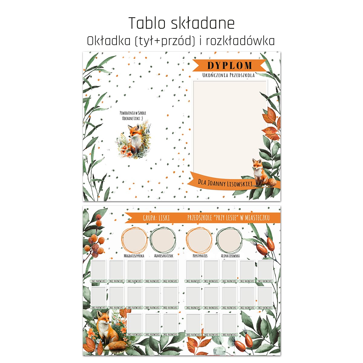 Zestaw zawiera okładki (przód i tył) oraz rozkładówkę wewnętrzną (środek).